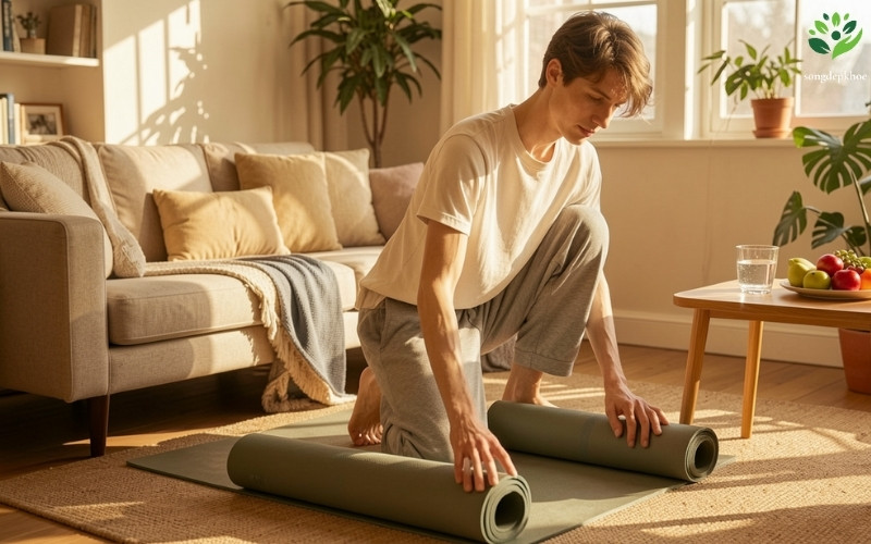 Để vượt qua rào cản này, bạn cần sử dụng chiến thuật “Thiết kế môi trường” (Environment Design). Hãy dọn dẹp lại không gian sống, tạo một góc nhỏ tĩnh lặng chỉ dành riêng cho việc trải thảm tập yoga. Khi không gian được thiết lập rõ ràng, não bộ sẽ tự động nhận diện đó là khu vực kỷ luật, giúp bạn dễ dàng bắt tay vào việc thực hiện các thao tác giảm cân tại nhà hơn.